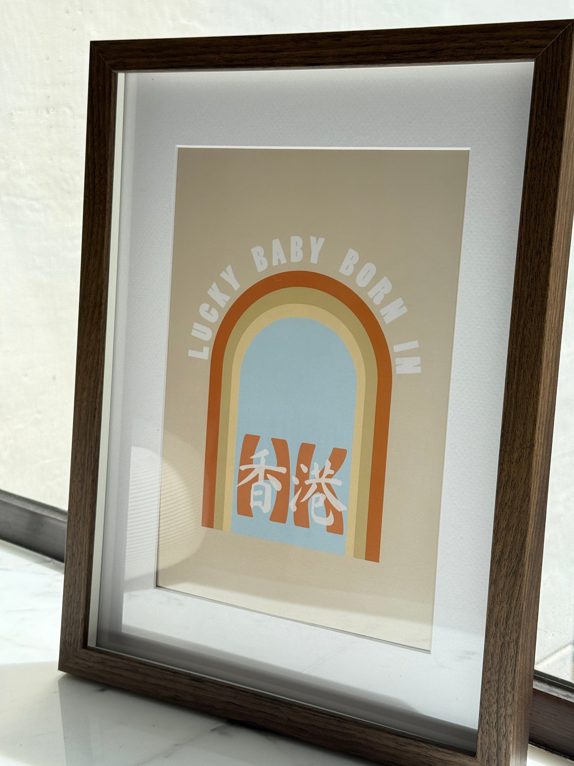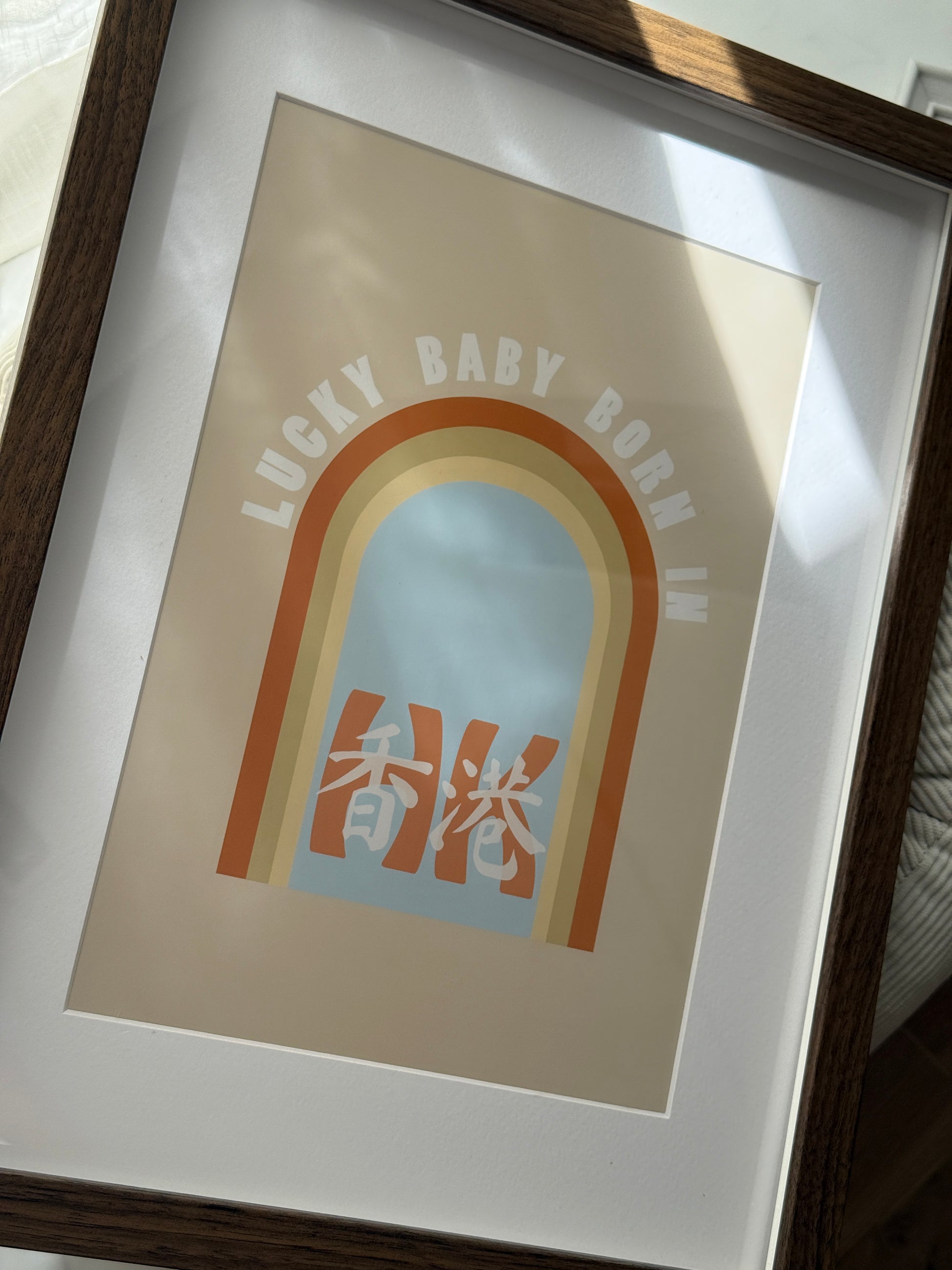Welcome your little one with our enchanting "Lucky Baby Born in Hong Kong" poster, featuring a radiant rainbow in warm orange tones! This delightful artwork not only brightens any space but also embodies the joy and fortune of your baby’s unique beginnings. It's a true blessing to be born here!